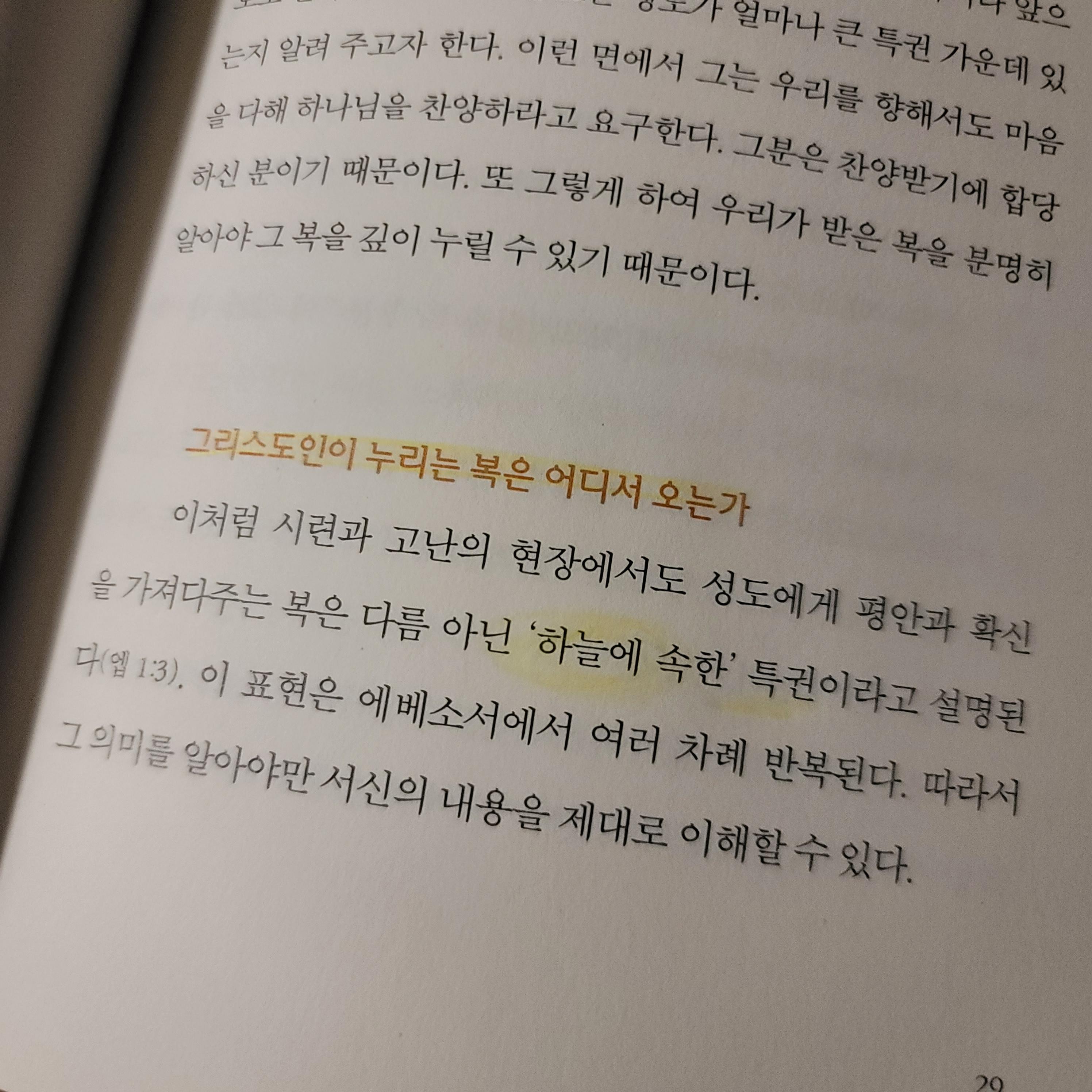 이번에는 천천히 책장을 넘기며 읽었지만, 순간 순간 에베소서를 펼쳐들 때마다 내 옆에 꼭 끼고 찾을 책을 발견해서 너무 귀하다 :)