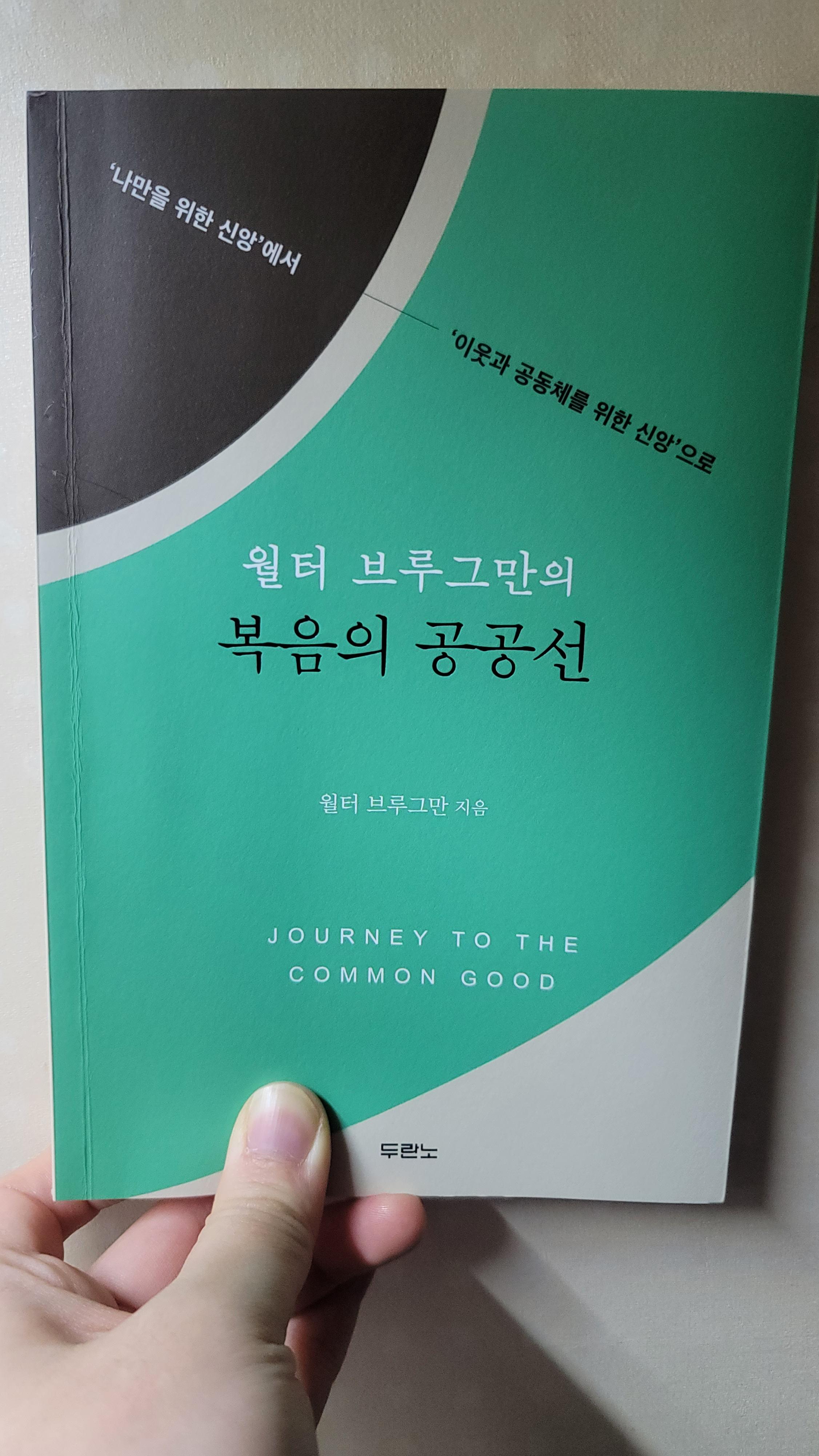 구약을 공부하다보면 꼭 만나게 되는 학자가 있다. 바로 이 책의 저자인 월터 브루그만이 그 중 한 사람이다. 구약 해석에 있어서 탁월한 권위자인 그가 '공공선'을 주제로 책을 냈다는 지점이 먼저 이 책이 신선하게 다가온 지점이었다. 특별히 광야 내러티브를 통해 팬데믹 현 시대를 해석해 낸 부분도 참 신선했다. 광야의 시기를 지나고있는 우리들에게 광야의 시선으로 현 시대를 바라본 통찰력있는 책이다.